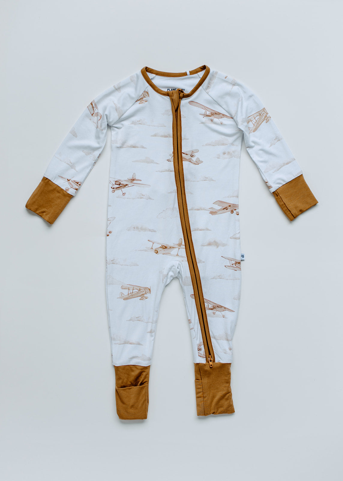 Please note: there will be variation in the placement of the print, as our sleepers are cut and sewn to make a one-of-a-kind pajama for your one-of-a-kind copilot.
